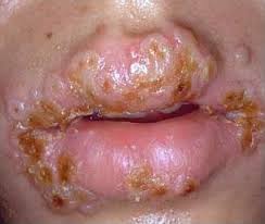 Es una infección de los labios, la boca o las encías debido al virus del herpes simple. Esta infección lleva al desarrollo de ampollas pequeñas y dolorosas comúnmente llamadas calenturas o herpes febril. El herpes oral también se denomina herpes labial.